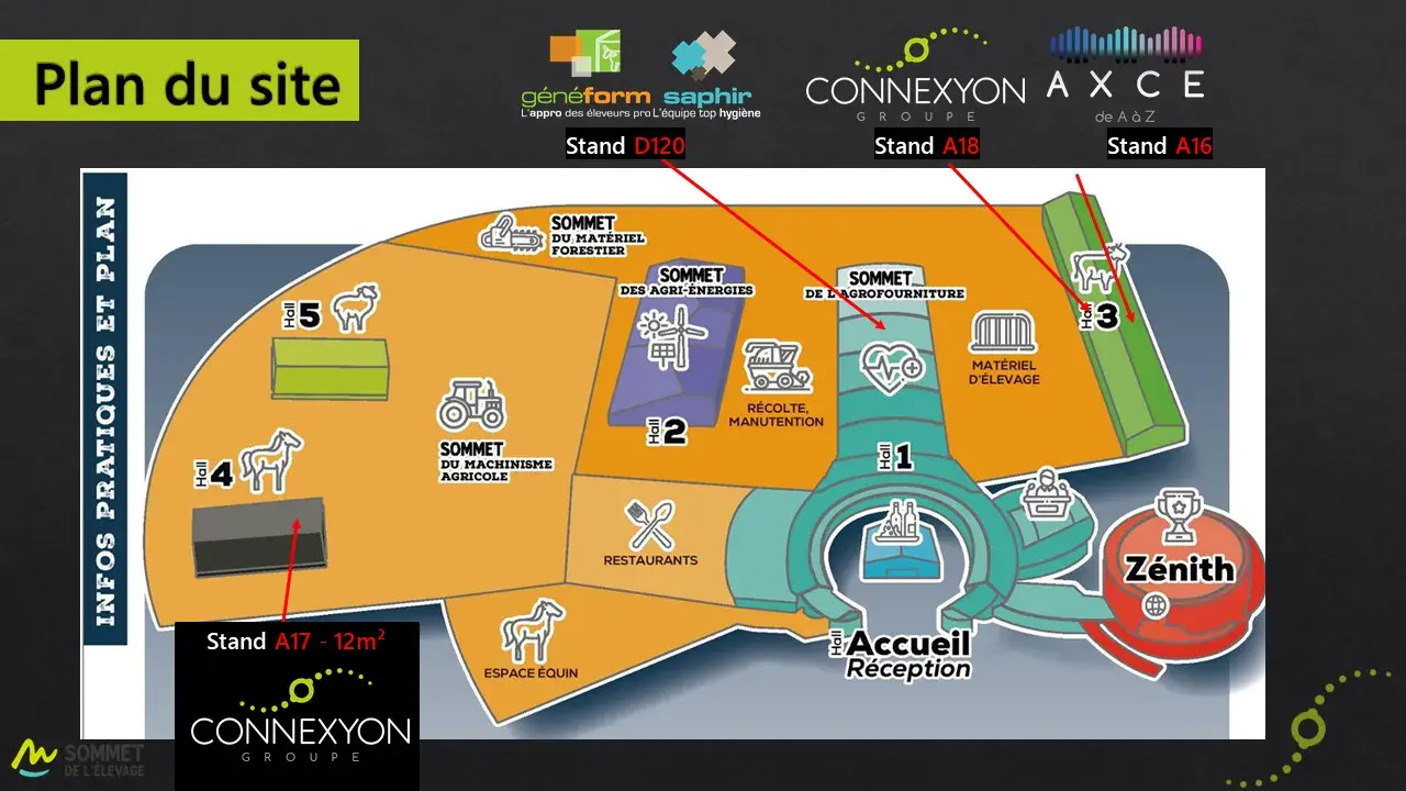 Retrouvez-nous au Sommet de l'Elevage ! Toute l'équipe Connexyon vous attend du 6 au 10 octobre 2025 sur ses stands :
